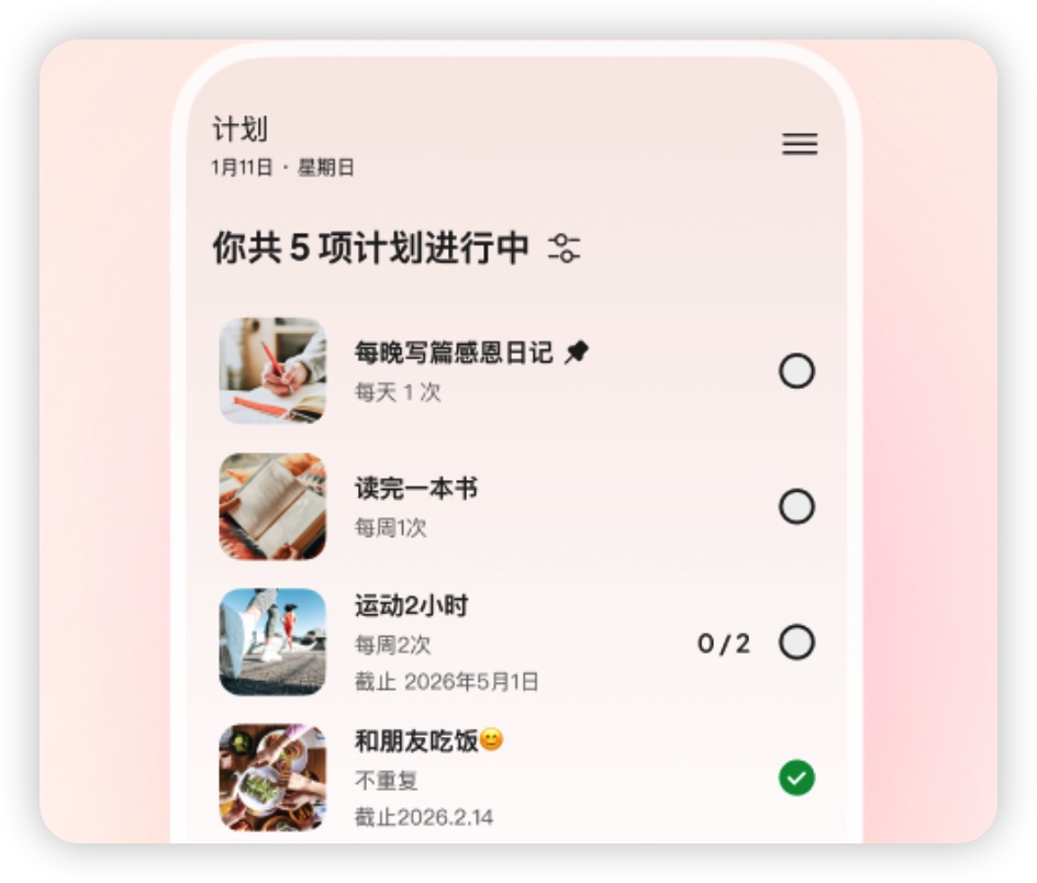 行动从日记中自动提取待办事项,生成可执行的计划清单,让记录成为行动的开始。
